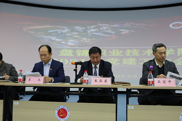 学院党委书记王正东同志代表学院党委向与会同志作了报告。他指出,过去一年,学院党委以习近平新时代中国特色社会主义思想为指导,牢牢把握社会主义办学方向,全面贯彻党的教育方针,围绕中心,立德树人,有力地推动党的建设工作取得新的进展。王书记站在全院高质量、内涵式发展全局的高度,着眼全面贯彻新时代党的建设总要求,对2021年我院党建工作进行了全面部署。讲话最后,王书记强调,今年是中国共产党建党100周年,是“十四五”规划的开局之年,是全国上下深入贯彻党的十九届五中全会精神落地落实之年,也是我院事业高质量发展、推动落实“十四五”发展规划的起步一年。全院上下要更加紧密地团结在以习近平同志为核心的党中央周围,深入贯彻落实中央和省委市委要求,认清形势、把握大局,务实前行、主动担当,为推进学院高水平建设、高质量发展提供坚强保障,以优异的成绩迎接中国共产党建党100周年。