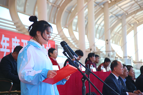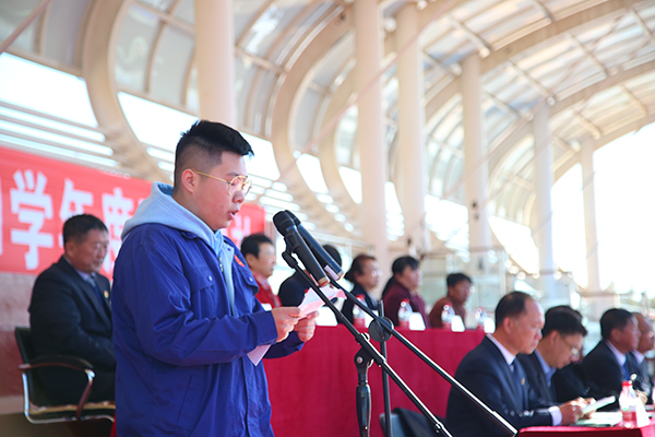 新生代表,化学工程系石油化工技术专业艾文萧在发言中代表全体新生表了决心,一定会扬起理想之帆,趁着美好时光,播种新希望,放飞新梦想,创造新成绩,在盘锦职院的这片热土上,同心,同德,同行,共同铸造新的辉煌。