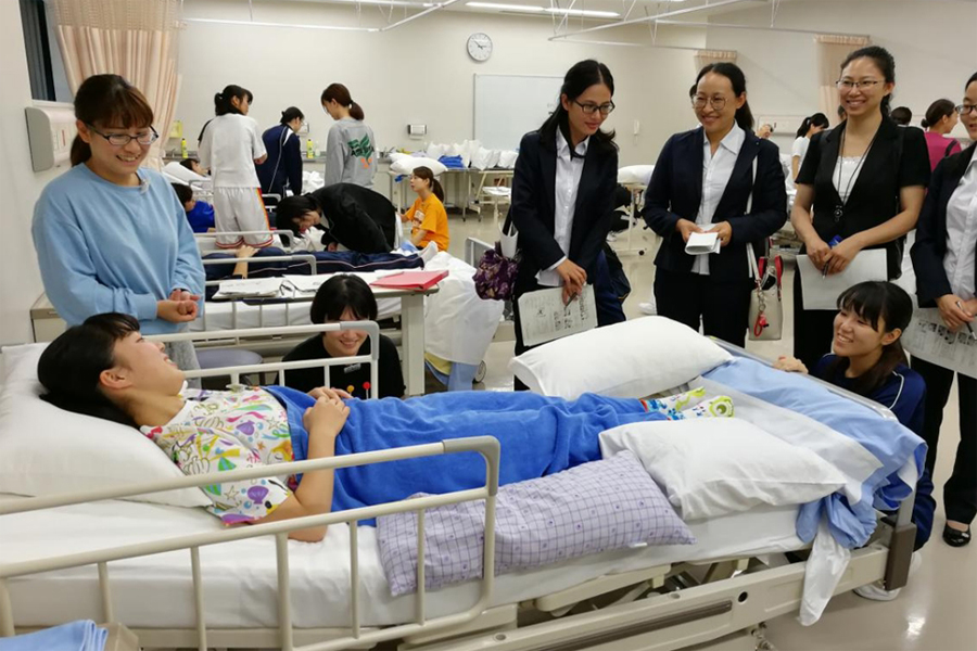 在神奈川县立保健福祉大学,日本教授为团组成员介绍了保健福祉学部、日本护理专业的教育理念、日本护理师资队伍建设与课程开发理念等。团组成员还深入课堂进行观摩学习,参观了护理实训室、图书馆等场所。该校十分注重培养学生与其他职业合作的意识,通过不断提升学生的品质,促进看护学科和其他医疗行业的共同发展。