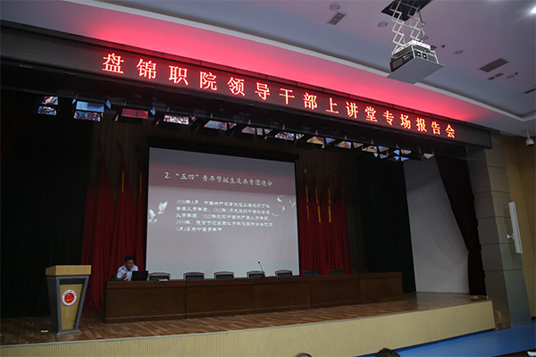 为深入学习宣传贯彻习近平总书记在北京大学师生座谈会和纪念马克思诞辰200周年大会上的重要讲话精神,根据辽宁省委教育工委和辽宁省教育厅相关工作要求,6月7日下午,学院开展“学习新思想辽宁百万师生同上一堂课暨领导干部上讲台”活动。学院党委书记王正东亲自授课,学院部分班子成员,思政课教师、学工队伍人员、部分学生代表,共计近千人现场聆听了报告。