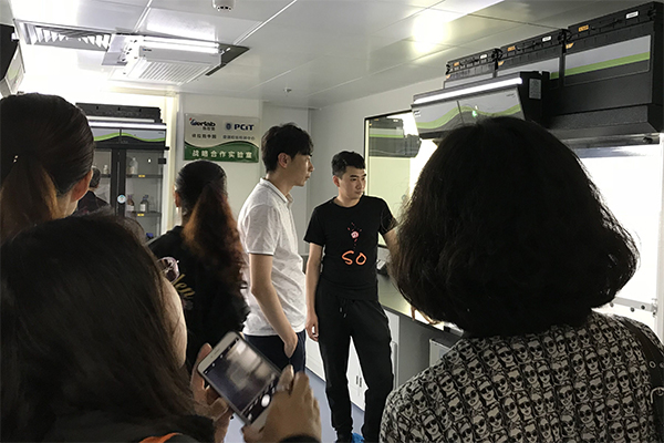师生分成3组,在我系就职于检验检测中心的毕业生张涵、李景旭、康家硕、于金晖的带领及讲解下,参观了中心的收样大厅、药品检测实验室、微生物检测实验室、理化检测实验室、图书室以及活动室,让师生了解了整个中心实验室建设、工作流程、规章制度和中心文化。通过参观赛默飞世尔科技合作实验室和与依拉勃战略合作实验室,观看了检验人员的现场实验,检验人员生动形象地为师生讲解了气相色谱仪、液相色谱仪、原子吸收分光光度计、电感耦合等离子体质谱仪等各类大型仪器用途和使用方法,认识了中心先进检测设备和技术,了解了检验岗位工作过程。