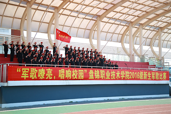 为巩固2016级新生军训成果,活跃校园文化,10月11日下午,学院学生工作处在学院体育场举行“军歌嘹亮,唱响校园”盘锦职业技术学 院2016级新生军歌比赛。