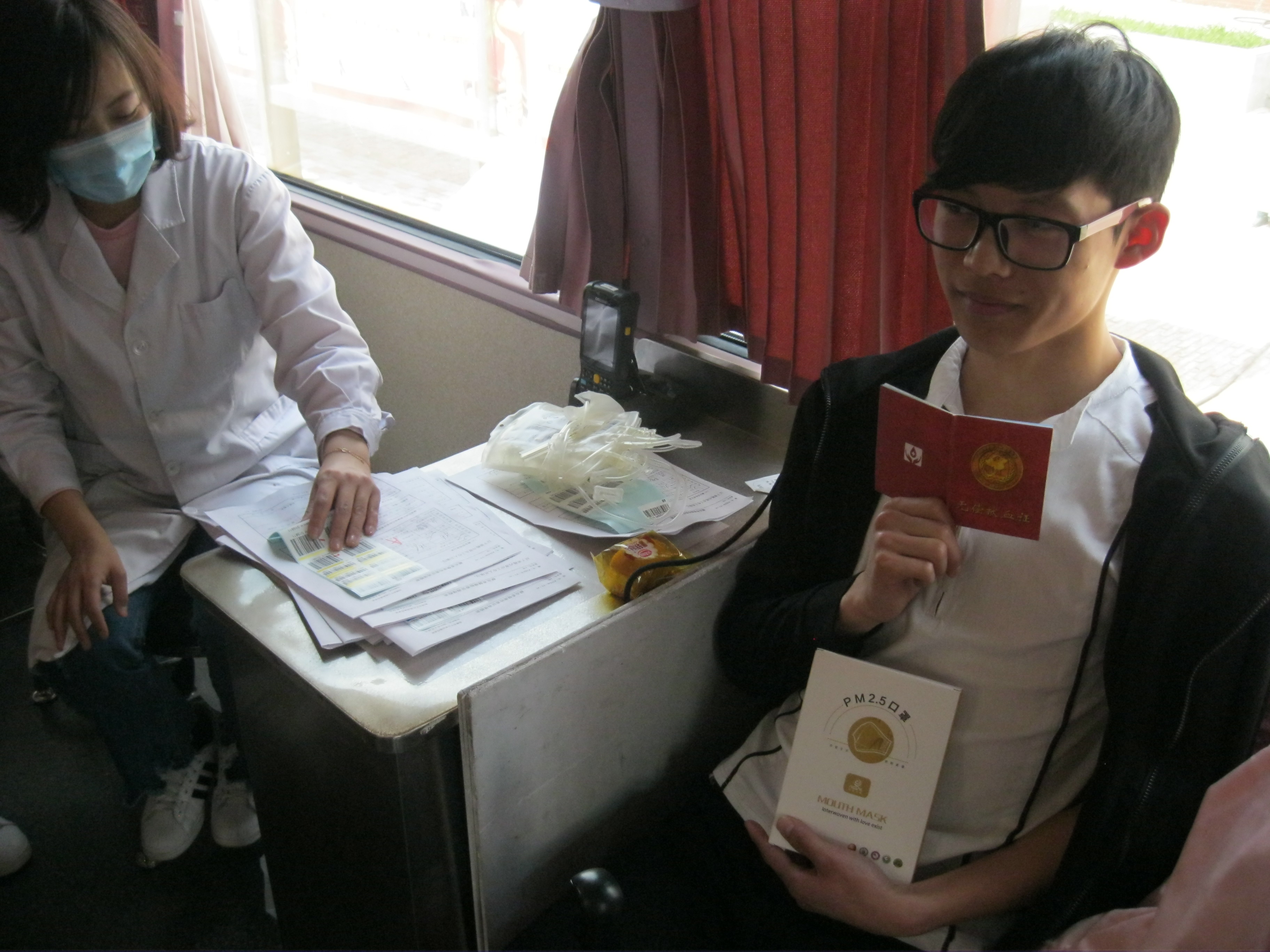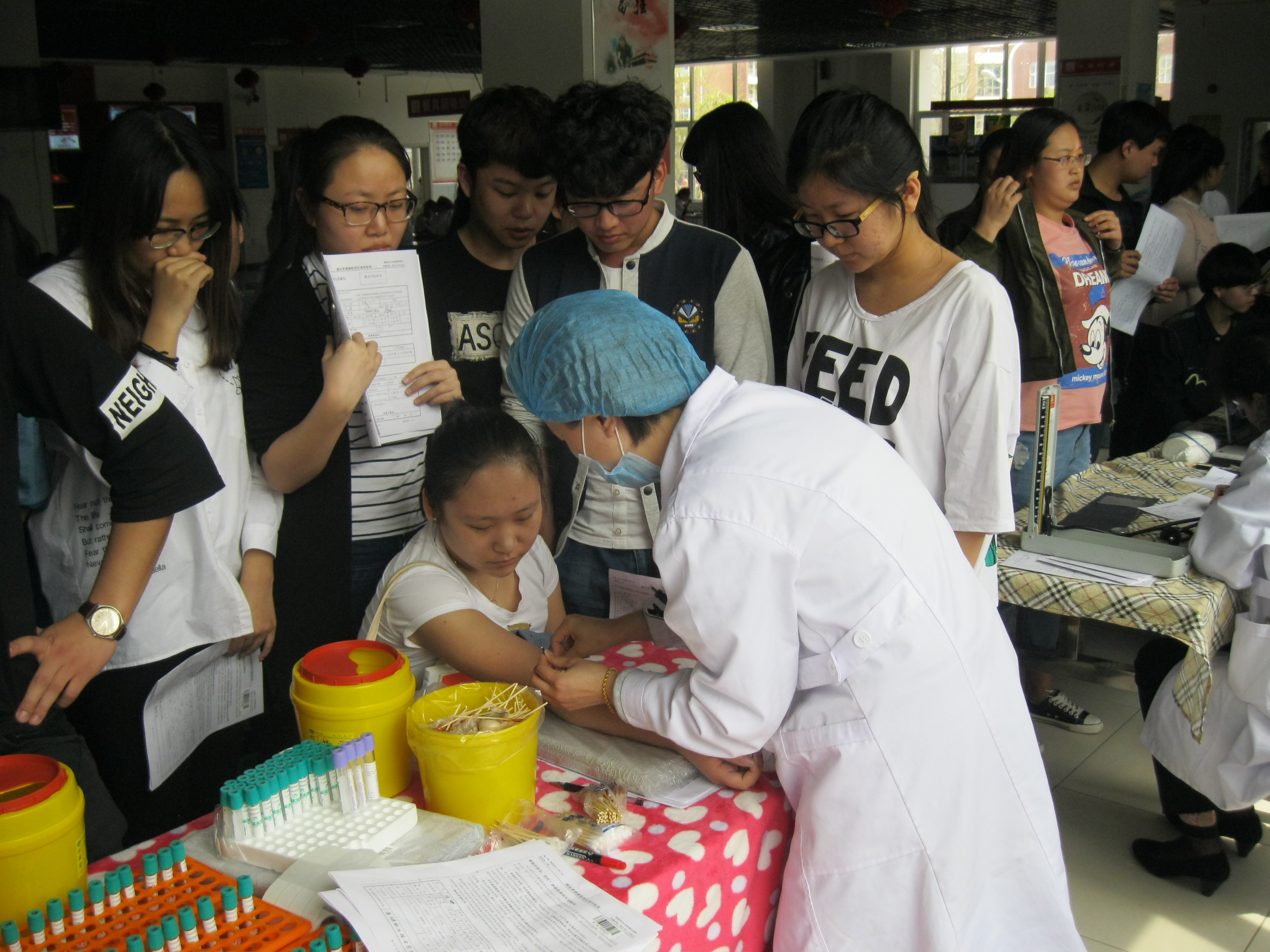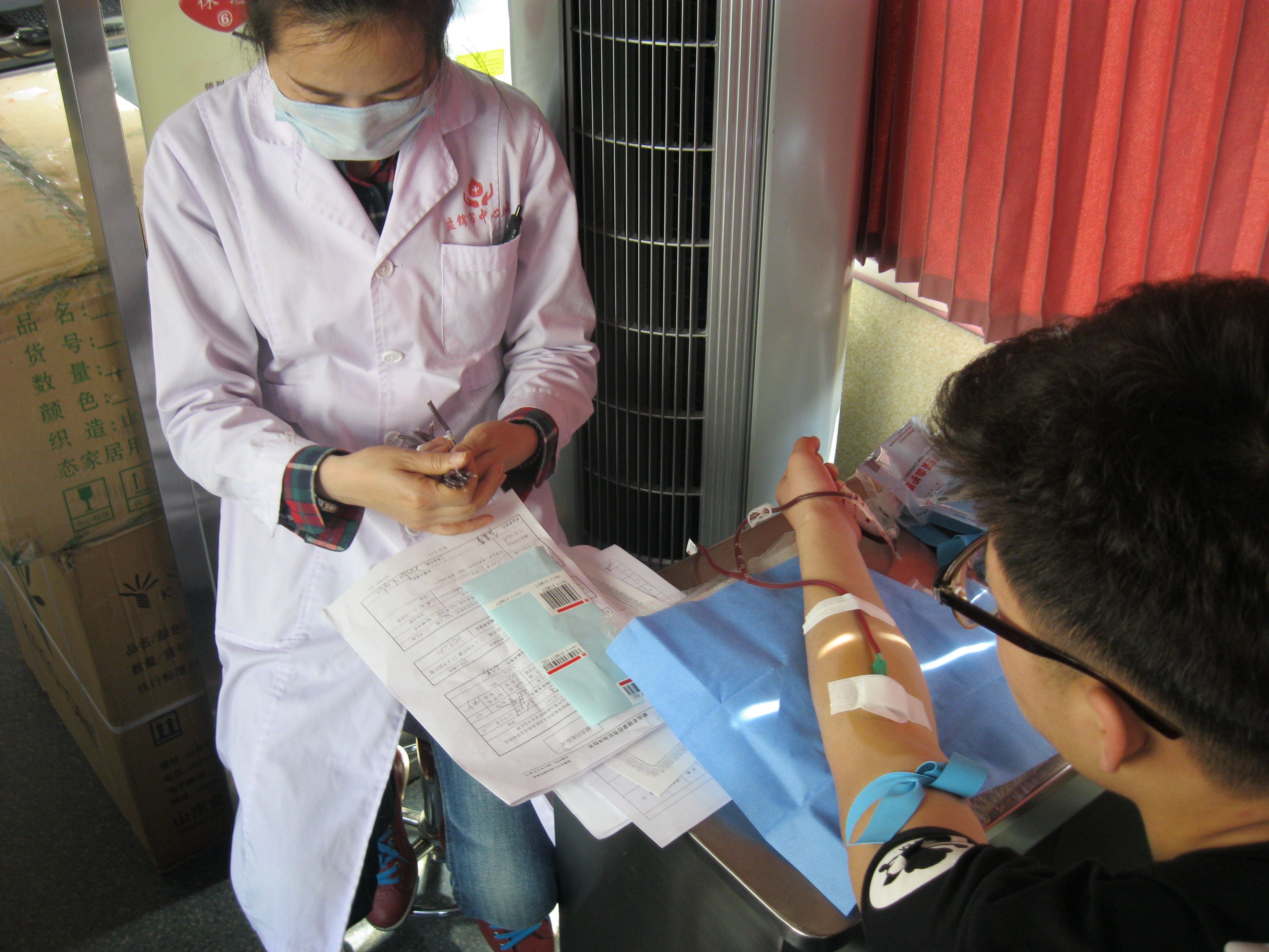4月27日,由盘锦市中心血站、红十字会联合学院团委共同组织的“奉献爱心•生命永续”义务献血活动于13:00在一食堂外举行。同学们早早就排起了队伍,填表、检验、测量血压、信息确认和上车献血,整个献血过程轻松而有序,学子们用爱心和热血展示当代青年的社会担当。