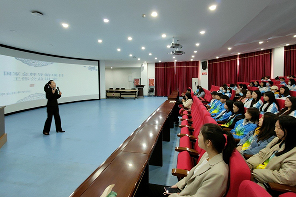4月27日上午,国家金牌导游、辽宁省导游协会会长王伟女士莅临学院为旅游管理学院百余名同学作了题为《如何做一名好导游》的公益讲座。本次活动也是国家金牌导游首次来到盘锦走进校园。