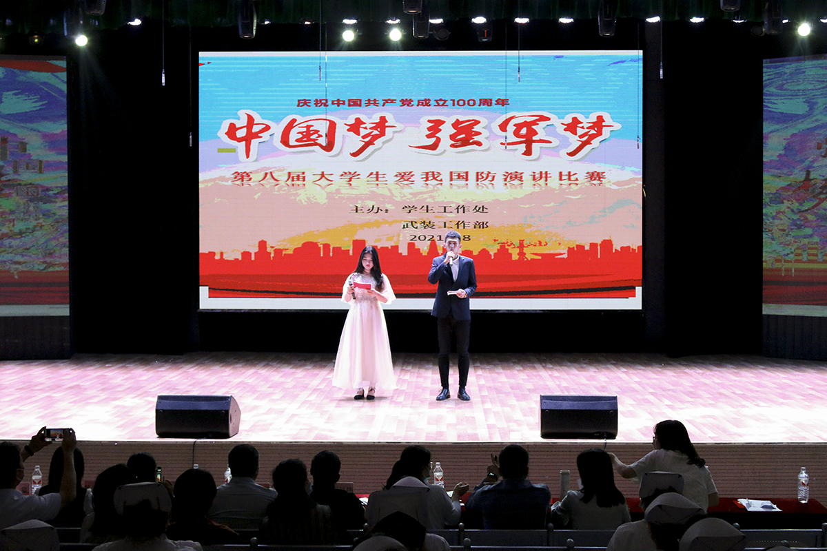 百年征程,初心不改。百年奋进,强我国防。在中国共产党建党一百周年之际,为全面贯彻落实习近平总书记新时代强军思想,激发青年学子强军梦、报国情,6月8日下午15点在学校文化中心三楼报告厅,学生工作处、武装工作部、团委共同举办第八届“中国梦·强军梦”大学生爱我国防演讲比赛。8个学院的16组选手参加了比赛,400多名师生到场观看。学生工作处处长、武装工作部副部长邓红伟及各学院的副书记、辅导员老师担任本次演讲比赛的评委。