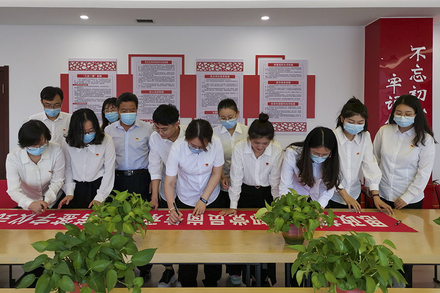 随后,各位老师围绕“学党史 悟思想 提能力 践行动”主题进行研讨,并就此次参观学习收获大家进行了分享。研讨结束后,全体党员在承诺条幅上庄重签下自己的名字,承诺未来在工作作风、工作效能、服务群众方面按照党员标准严格要求自己。