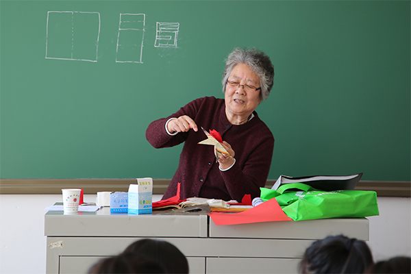 2017-04-01为了更好的组织引导离退休老教师在增添社会正能量中发挥积极作用,学院离退休办于3月28下午邀请学院退休老教师王艳茹到师范教育分院指导学生做手工剪纸活动。 在活动中,王老师给学...