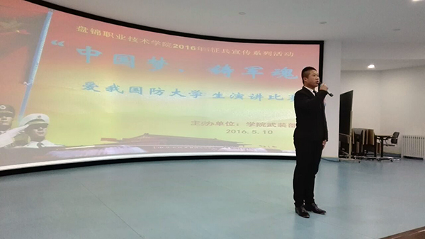 2016-05-115月10日晚6时,学院武装部在博远楼举办“中国梦,铸军魂”爱我国防大学生主题演讲比赛。学院学生工作处、团委及各分院系的领导、辅导员和学生代表观看了比赛。 此次比赛以“中国梦,...