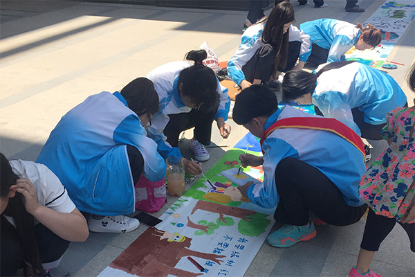 2016-06-086月5日上午,艳阳高照,和风煦暖,广厦艺术街内街南区,十多幅长卷席地而铺,近700名学生凝神伏于长卷一侧,奋笔疾书。这里就是“我家辽河口”杯学生与书画名家共绘百米长卷活动现场...